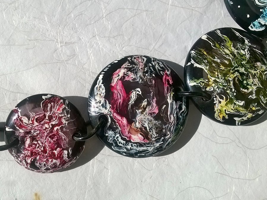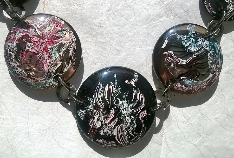 Bijoux peints, et quelques sacs, pièces uniques et signées.